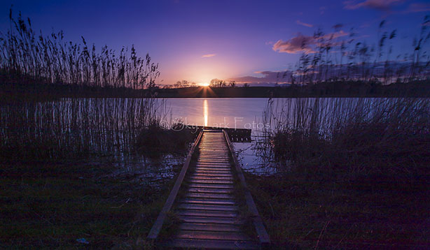 On a glorious March evening we set up the tripod and the camera at a fishing Jetty at Mentrim Lake just a few kilometers outside Ardee. The plan was to capture a shot as the sun went down behind the hills at the opposite end of the lake, and line it up with the fishing Jetty.
